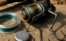 Удилище подбирают под специфику водоёма. Для дальних забросов беру бланк с быстрым строем из графита IM8: жёсткое колено подсекает рыбу без промедления, а стенка с микропористой структурой гасит рывки. Лёгкий композит снижает усталость кисти при многократных забросах. При ловле в коряжнике выручает короткий «прут» с тестом до 40 г, ведь лишняя длина цепляется за ветви. Леска — монофил с абразивоустойчивой полиамидной сердцевиной или флюорокарбоновый шнур, когда нужна маскировка в прозрачной воде. Диаметр записываю маркером на шпуле, чтобы ночью не искать лупу.